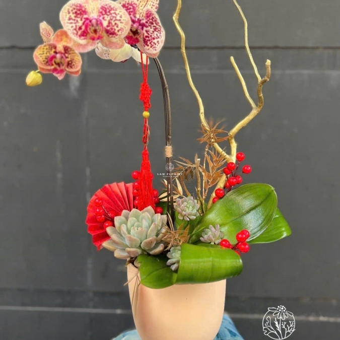 0896 401 916 Chậu Hồ Điệp 1 Cành - Happy New Year