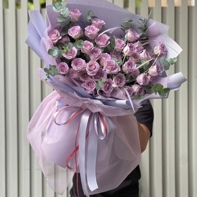 0896 401 916 Hoa bó 30 bông hồng tím nhẹ nhàng