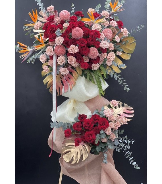 Kệ hoa “Hồng Vinh Thịnh Đạt” gửi gắm lời chúc: