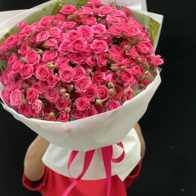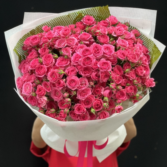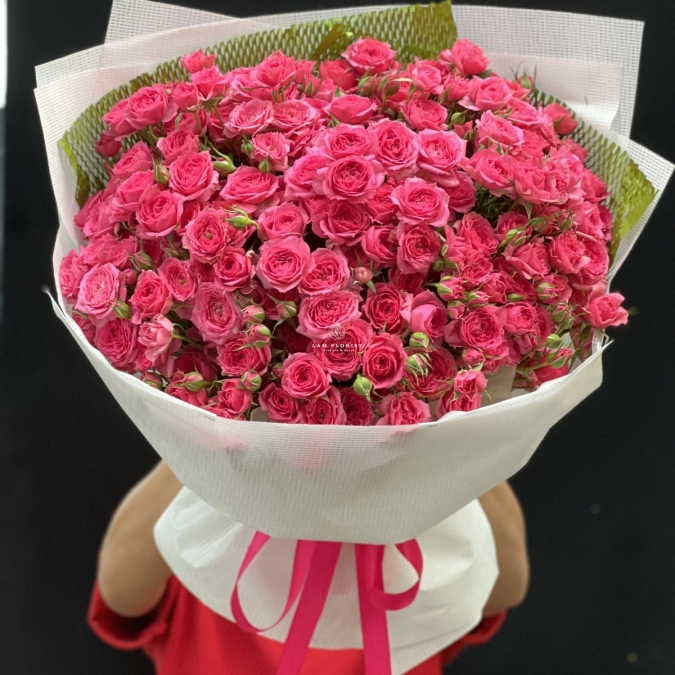 Bó hoa hồng chùm Sofia với sắc hồng đậm quyến rũ tượng trưng cho sự nồng nàn, ngọt ngào và tràn đầy sức sống. Những đóa hồng nhỏ xinh nhưng dày đặc, như muôn lời yêu thương đang cùng nhau cất tiếng — vừa tinh khôi, vừa mãnh liệt.