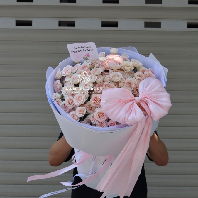 Tại Lâm Florist, chúng tôi luôn nỗ lực mang đến những bó hoa tươi đẹp nhất, được thiết kế tỉ mỉ theo yêu cầu của quý khách. Vì hoa là sản phẩm tươi và không có sẵn, quý khách vui lòng đặt trước ít nhất 2-3 tiếng để chúng tôi chuẩn bị nguyên liệu và thực hiện cắm hoa theo đúng ý muốn của bạn.