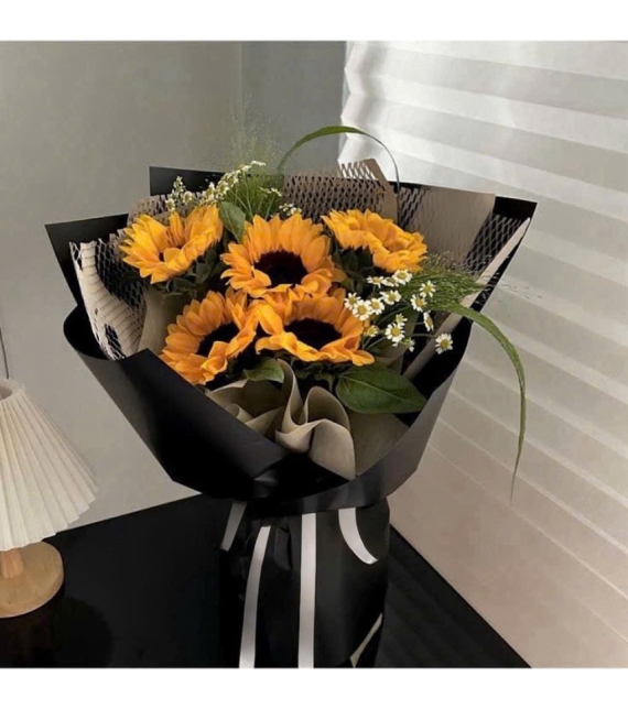 Được gói trong tone đen sang trọng, bó hoa vừa hiện đại vừa ấm áp – một món quà lý tưởng để cổ vũ, tiếp thêm động lực hoặc đơn giản là gửi chút nắng vào ngày của người bạn thương.