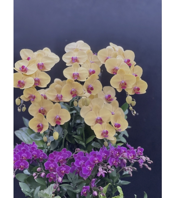• Chậu lan Phúc Lộc Vượng Niên là sự kết hợp tinh tế giữa hai sắc hoa chủ đạo: