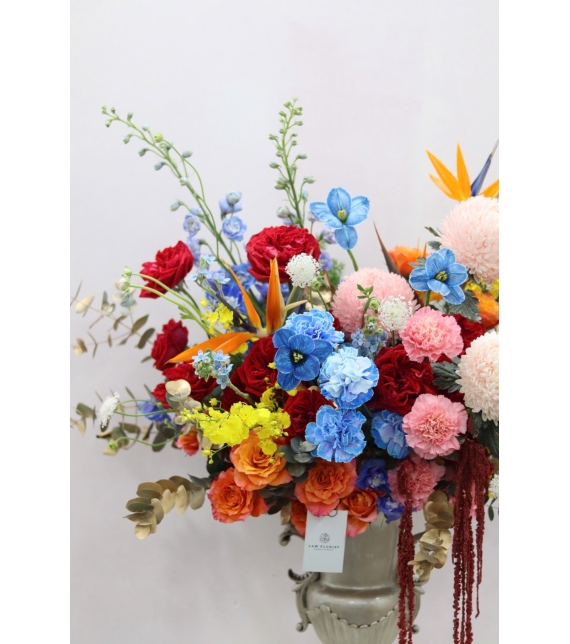 Bình hoa được thiết kế theo phong cách fine art hiện đại, nơi mỗi loài hoa giữ một vai trò riêng nhưng hòa quyện hoàn hảo, tạo nên tổng thể sang trọng, sống động và đầy chiều sâu cảm xúc.